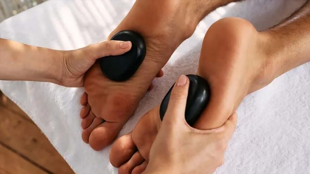 - Preparation: You’ll lie on a massage table, and the therapist will place heated stones on areas like your back, palms, or feet.
